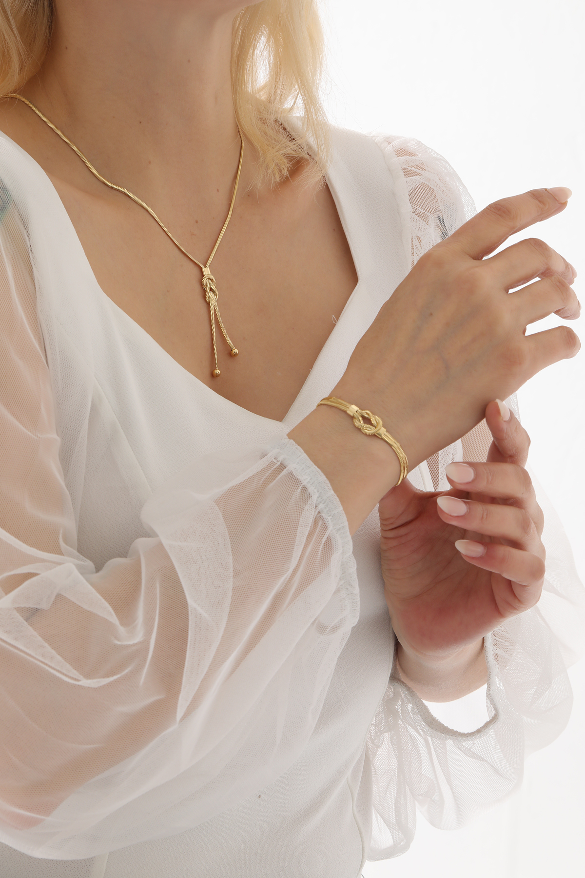 • Balık sırtı zincirin modern görünümü ile aşk düğümü detayının zarif birleşimi.