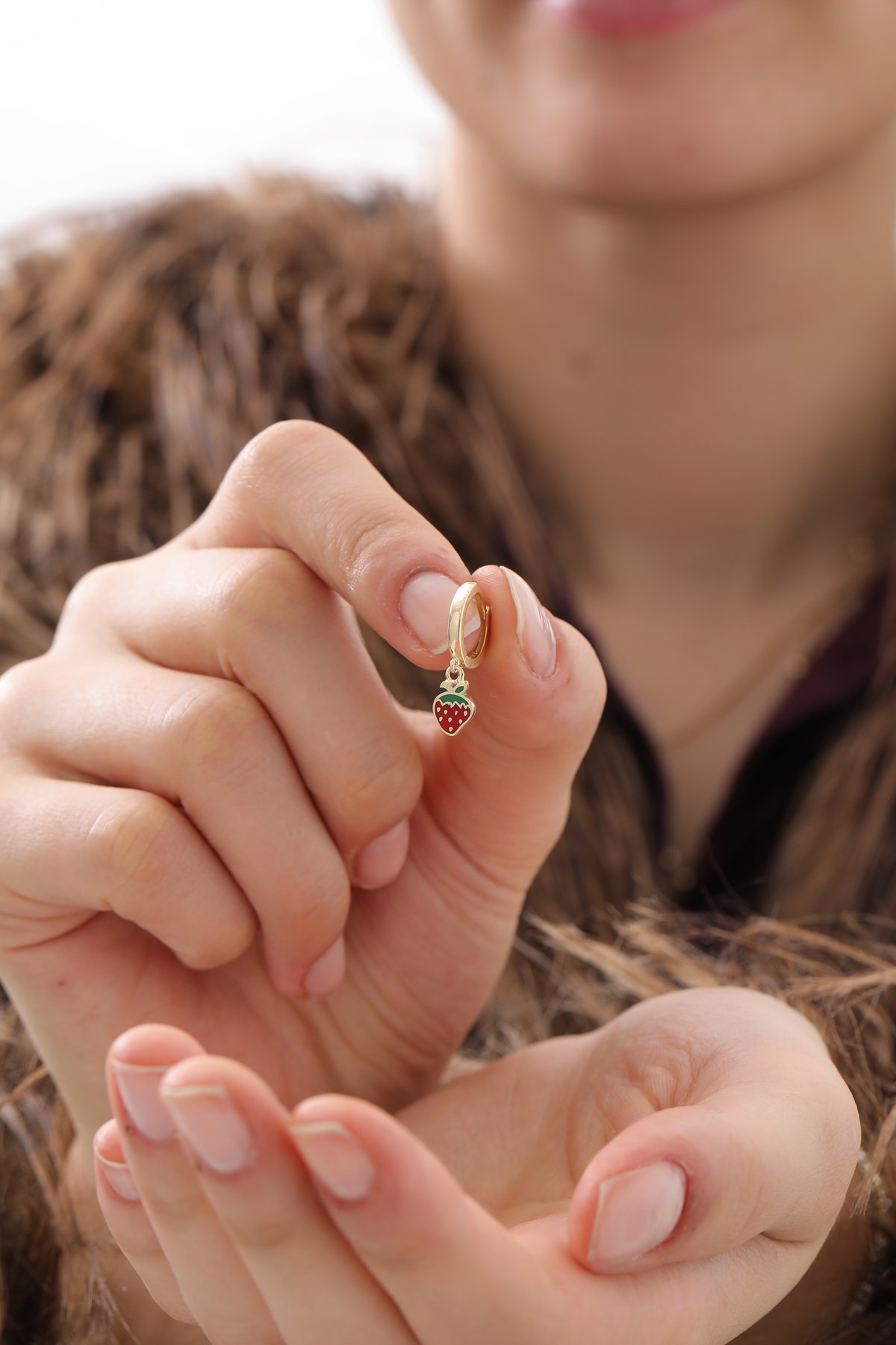 Çilek Detaylı Halka Küpe