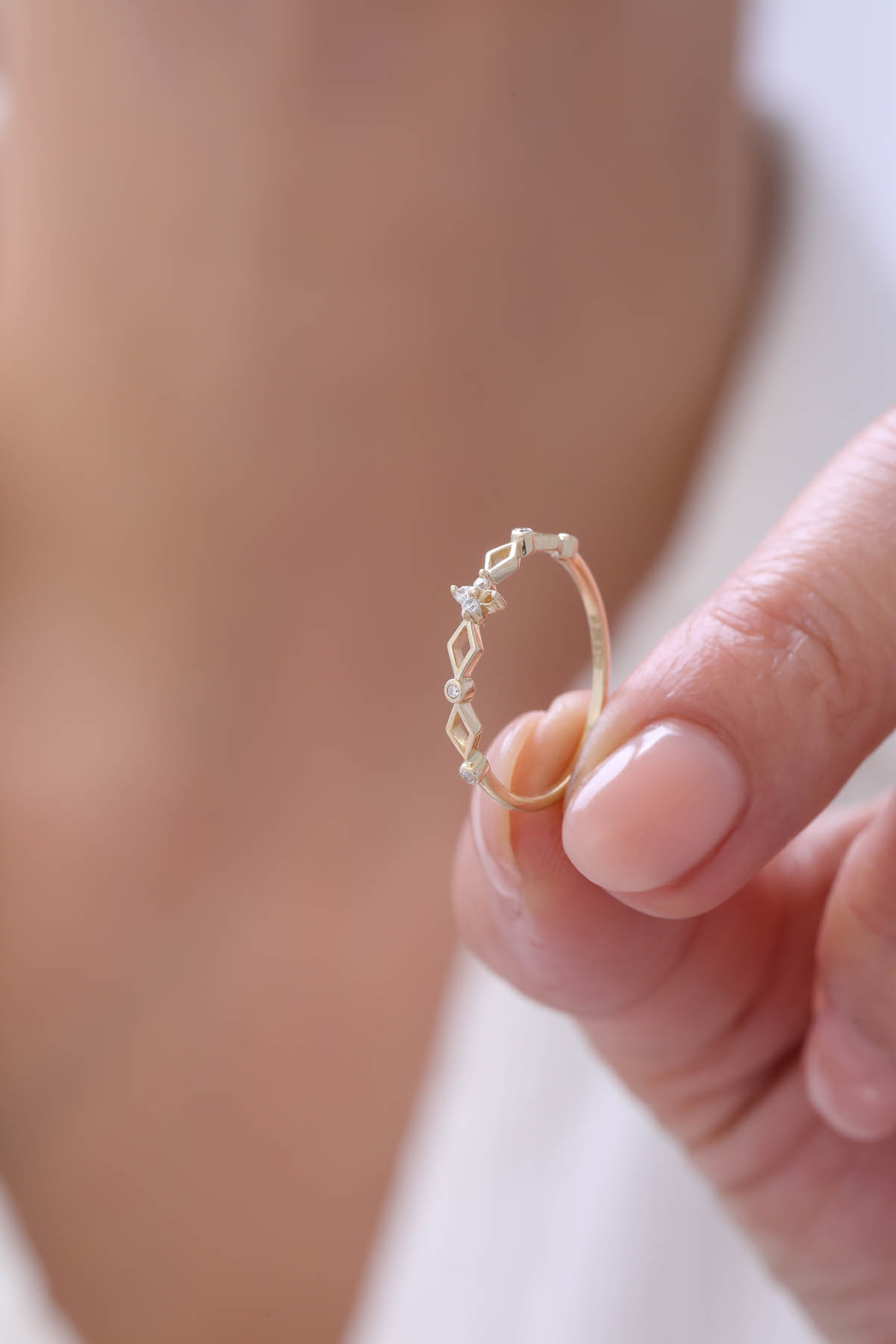 14 Ayar Altın Elmas Kesim Görünümlü Minimal Yüzük