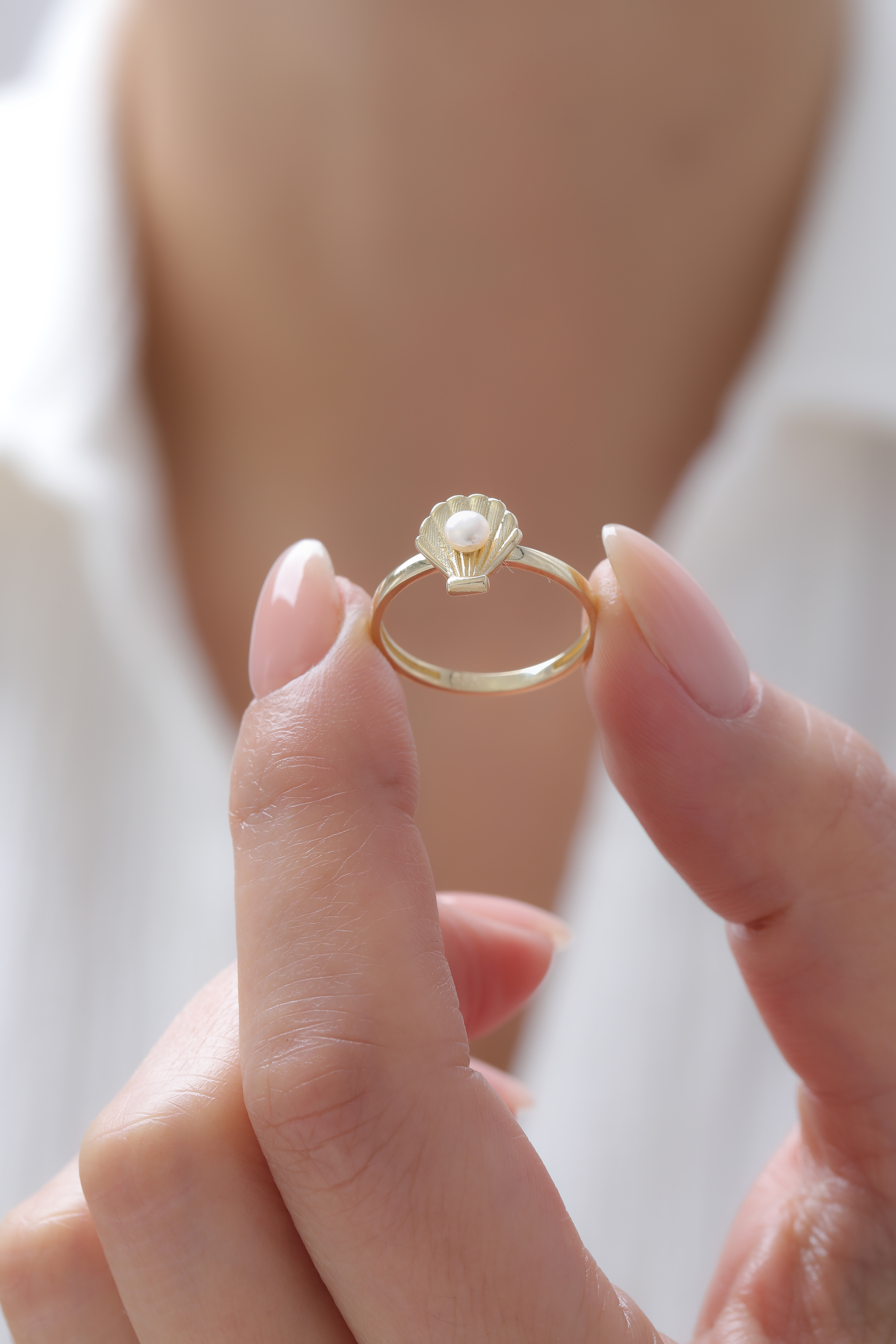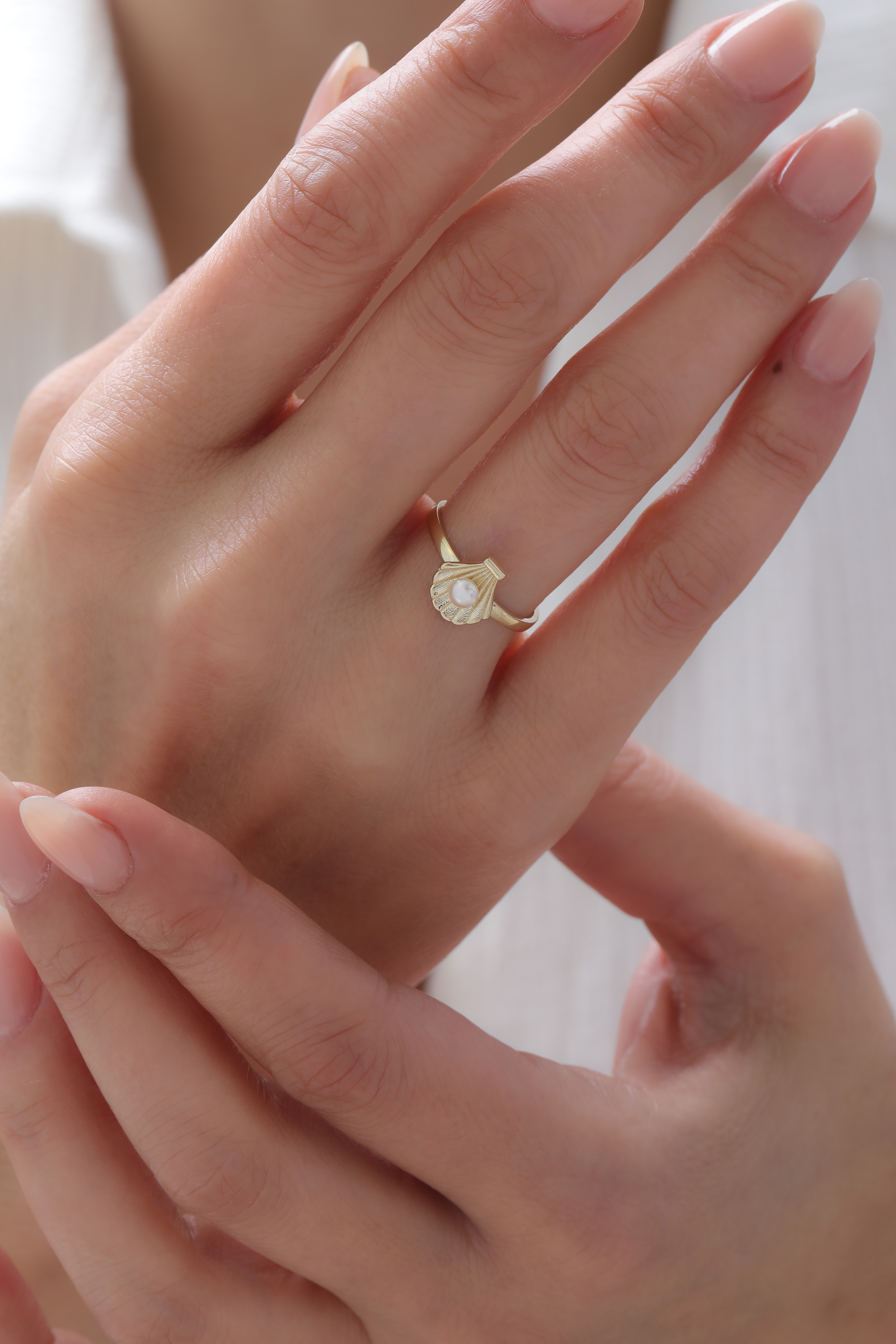 14 Ayar Altın İ stiridye İnci Yüzük