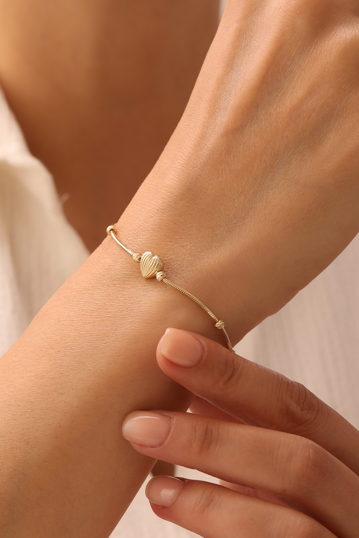 14 Ayar Altın Kalze Dorika Toplu Kalp Bileklik