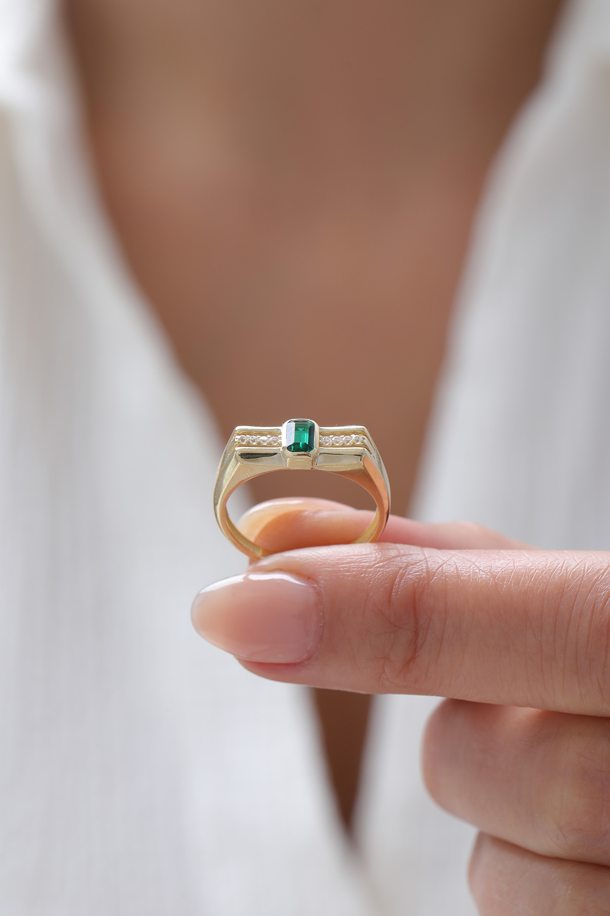 14 Ayar Altın Modern Zümrüt Yüzük