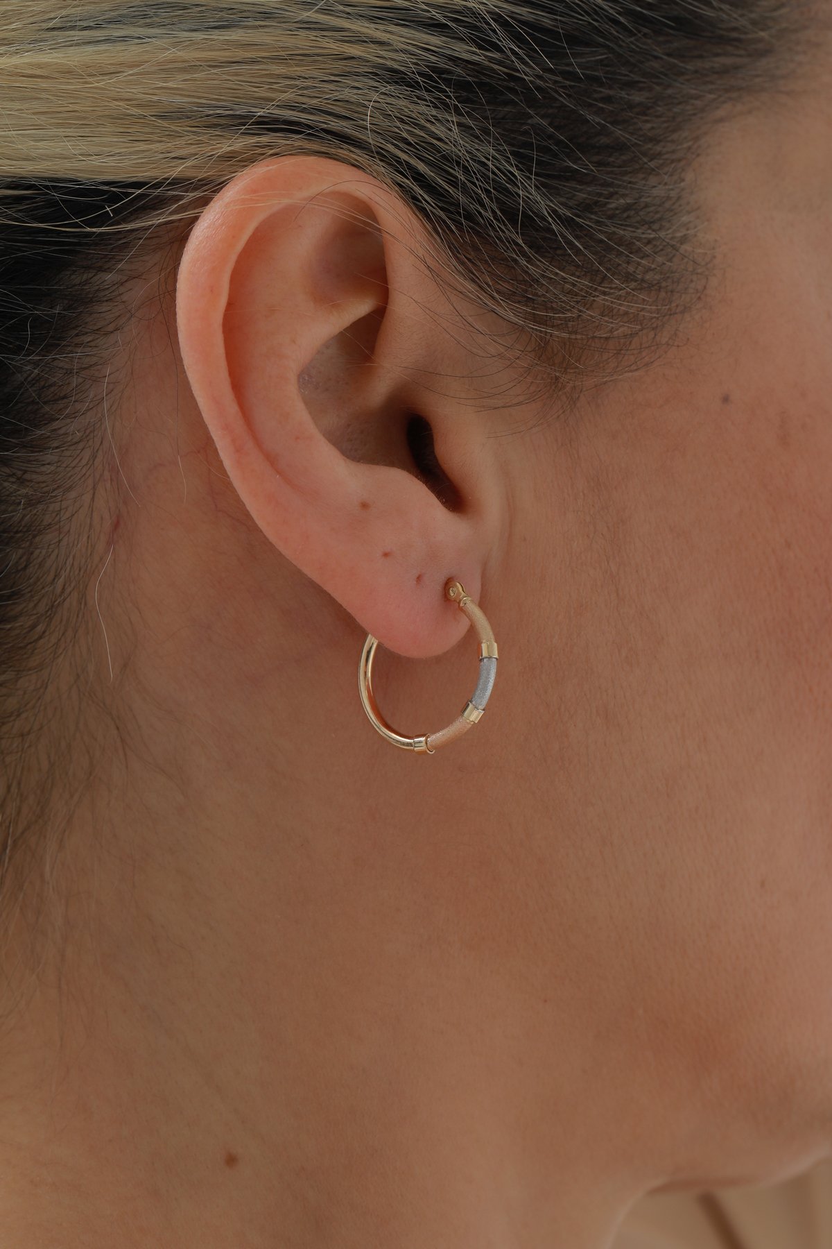 Üç Renk Desenli Halka Küpe